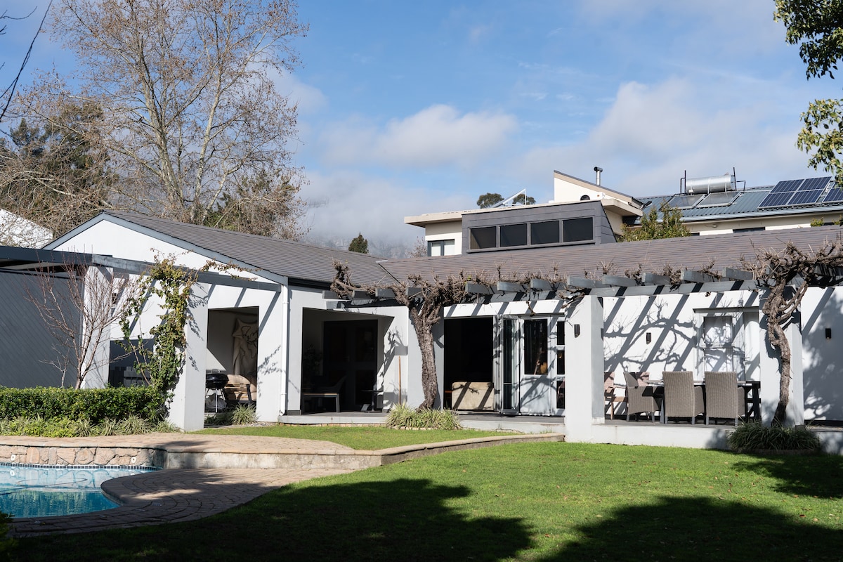 Charming Villa is a luxurious fully equipped, self-catering home. A unique, spacious accommodation, the ideal choice, intimate and romantic. Situated in the heart of the Cape Winelands, with two major golf courses, award winning vineyards, restaurants and the historical town of Stellenbosch, all within a 5 minute drive. Create lifelong memories with your family and friends in Charming Villa. Unspoilt views of the vineyards and the exquisite mountains.