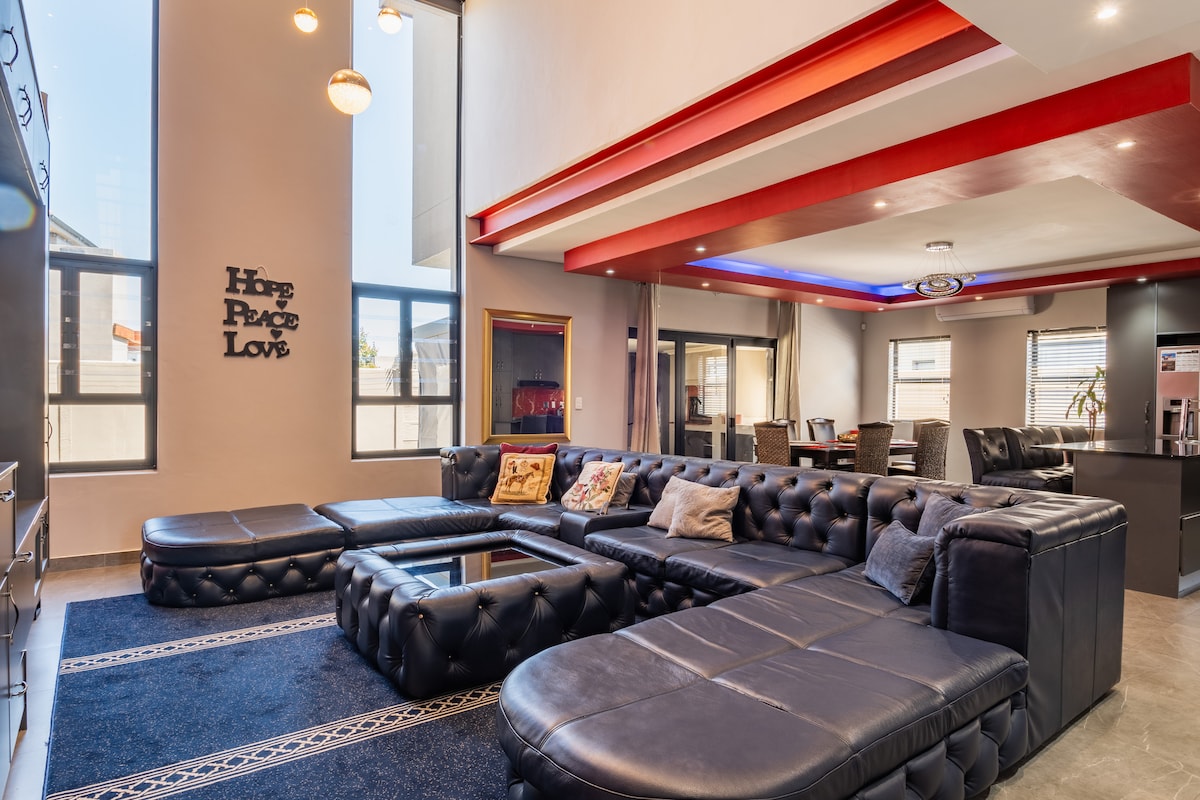 Charming Villa is a luxurious fully equipped, self-catering home. A unique, spacious accommodation, the ideal choice, intimate and romantic. Situated in the heart of the Cape Winelands, with two major golf courses, award winning vineyards, restaurants and the historical town of Stellenbosch, all within a 5 minute drive. Create lifelong memories with your family and friends in Charming Villa. Unspoilt views of the vineyards and the exquisite mountains.