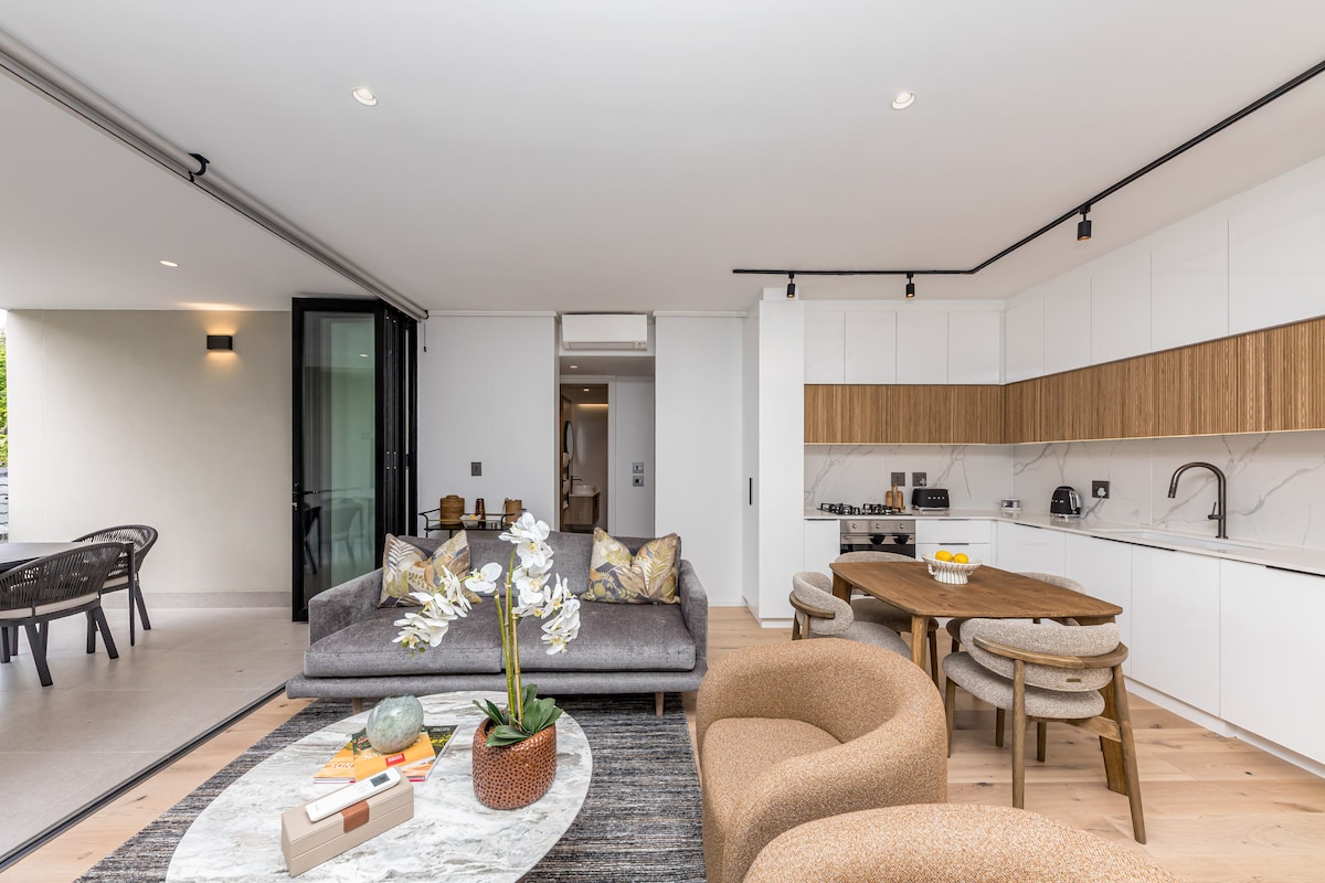 This stylish self-catering apartment can accommodate up to 4 guests with 1 double bed & a super comfy sleeper couch. Located in the absolute centre of Stellenbosch, you'll find all amenities, restaurants, bars and souvenir shops right on your doorstep. This is the perfect home base for solo travellers, couples, friends or small families visiting our beautiful town This unit offers 1 allocated basement parking bay