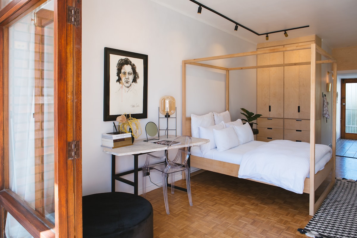 Absolute to die for finishes, TOWN centre, amazing balcony to sip amazing wine or have a look at town surrounds or need a time to rest! Sink into a perfect white bed with a soothing morning tea, or step out onto the cozy, covered terrace and watch the breeze rustle the trees. This tranquil studio apartment combines classic parquet floors with perspex, modern and dreamy interiors!