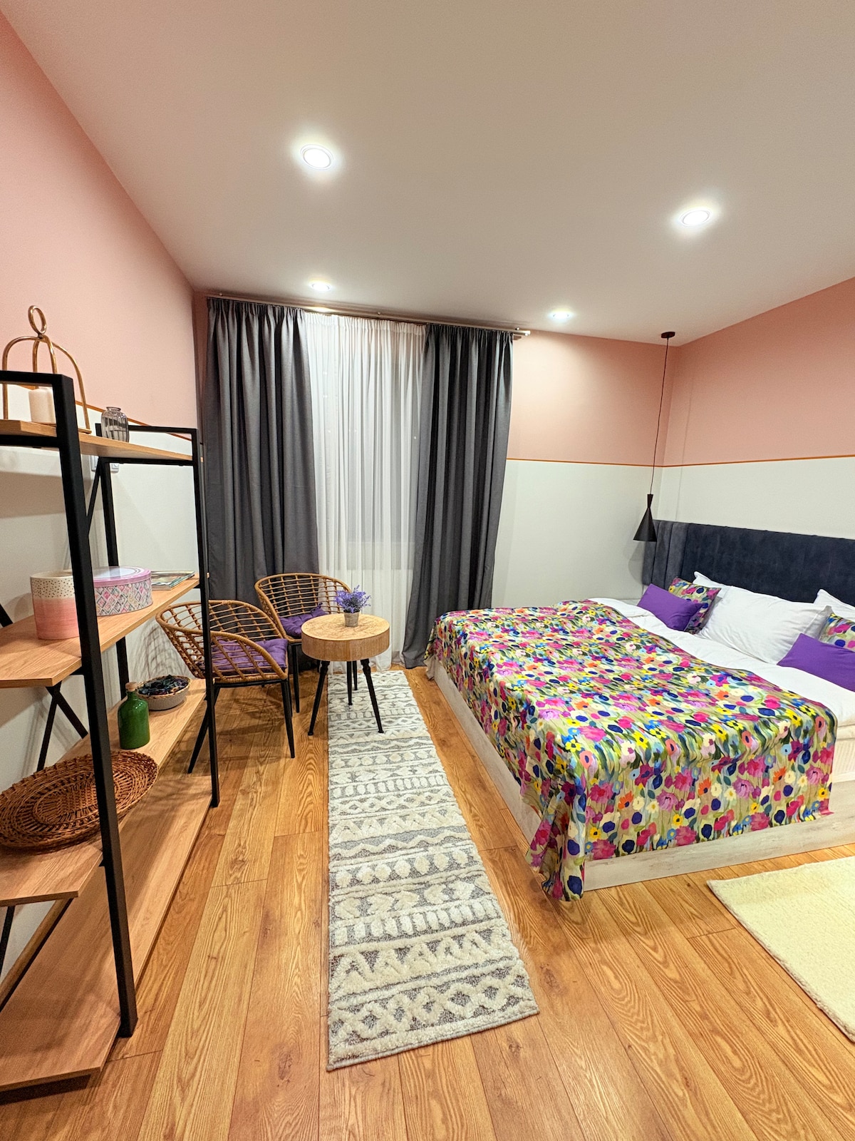 Kazbegi Stylish Apartment is located at the base of Kazbek Mountain in Stepantsminda Village, 7 km from the 14th-century Gergeti Trinity Church. The spacious apartment is Brand New and is decorated with wooden furnishing and huge windows filled with sunshine overlooking the stunning 14th century Gergety Trinity Church and Mount Kazbegi. You have these views even from your bed. Newly equipped kitchen, trendy everything…Bring the whole family to this stylish place with lots of room.