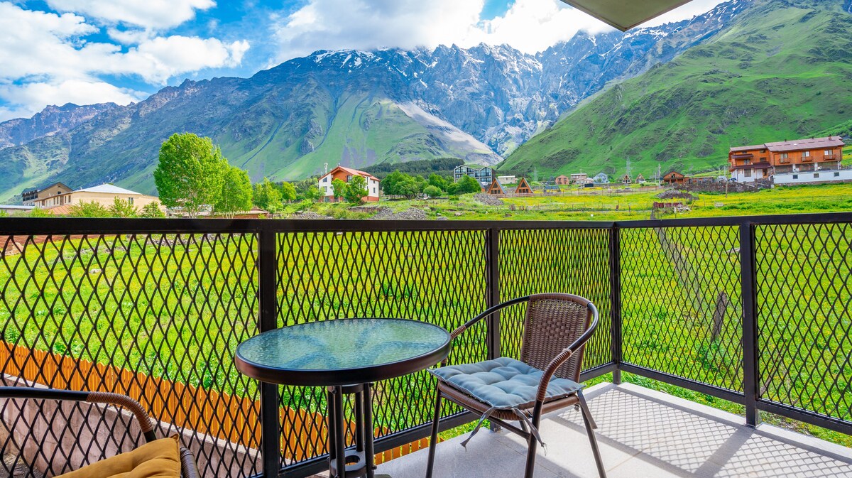 Located in the heart of Stepantsminda with amazing views, our flat offers every comfort for enjoying your holiday. In summer and winter, or any time of the year choose one of our fully-furnished flat. We have arranged the accommodation to make you as comfortable as possible during your holiday.