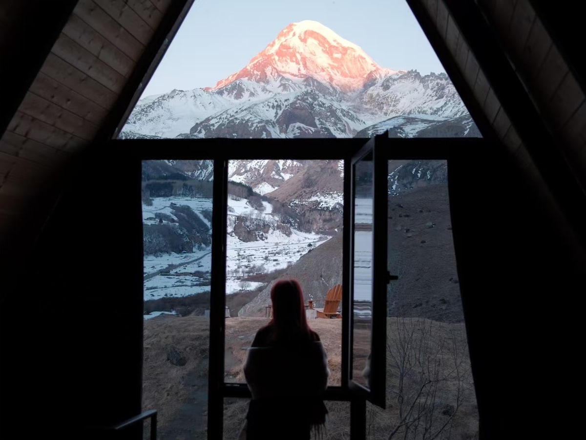 Peaceful A-frame cabin in Kazbegi - Stepantsminda by the river, surrounded by mountains. Enjoy fresh air, beautiful views, and total tranquility. Clean, cozy, and fully equipped. Perfect for couples, friends, or families. Close to hiking and waterfalls. Hosted by a Superhost for a smooth stay.