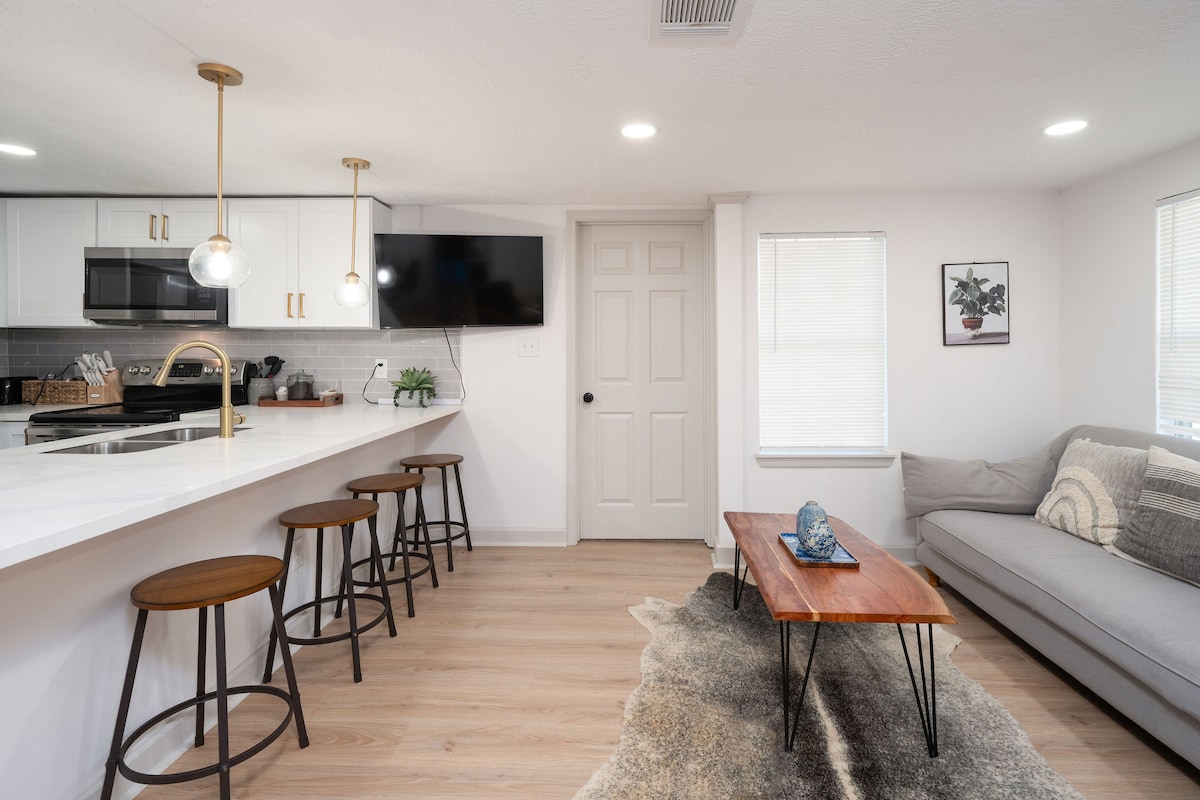 Entire 3 bedroom and 2 bathroom home is just steps from downtown Sealy and has been completely remodeled with stylish finishes throughout and PLENTY of parking! Everything you need for a comfortable stay! Each room is complete with a TV and the home has high speed Internet. All the great restaurants from downtown are just right out your front door. Many guests enjoy watching the trains come and go nearby, but others do not. Noise machine available if desired.
