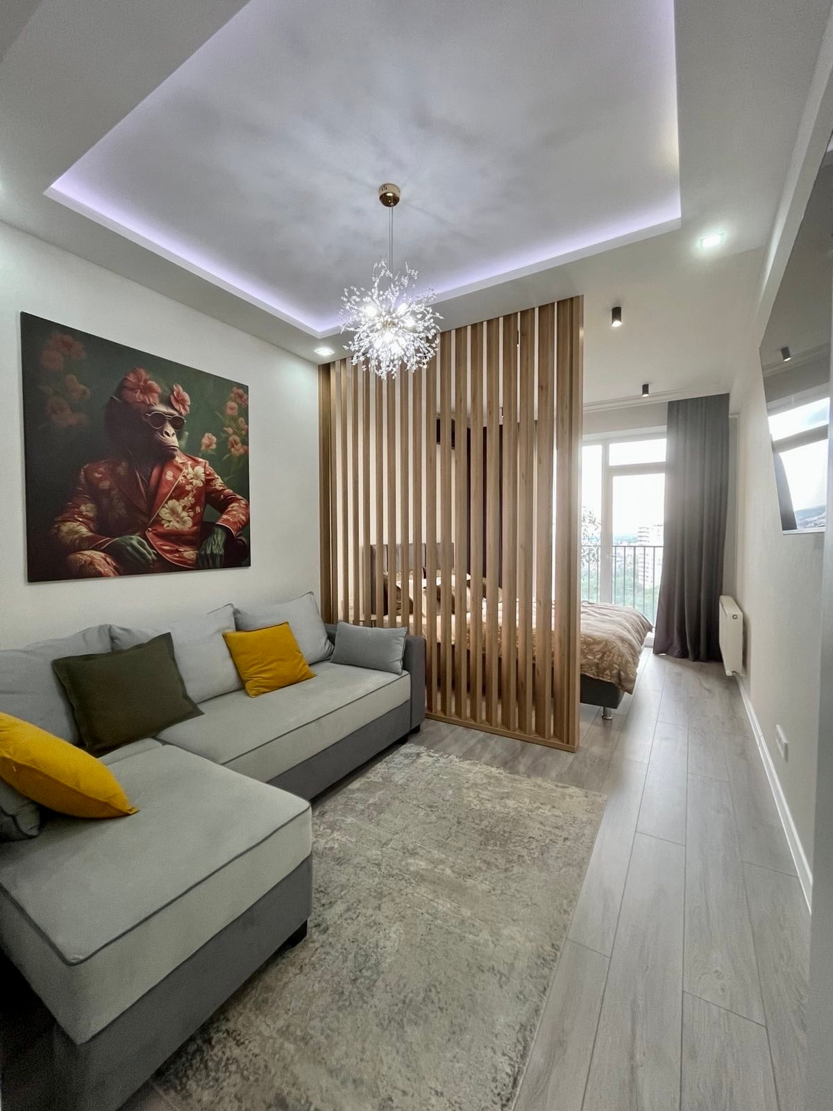 Welcome to our enchanting apartment, perfectly nestled in the heart of the bustling city center, offering you a serene oasis with breathtaking panoramic views of the surrounding park from your very own private balcony. Step inside and immerse yourself in the modern comfort and elegance of our thoughtfully designed space. The living area is bathed in natural light, with panoramic windows framing the verdant beauty of the park below.