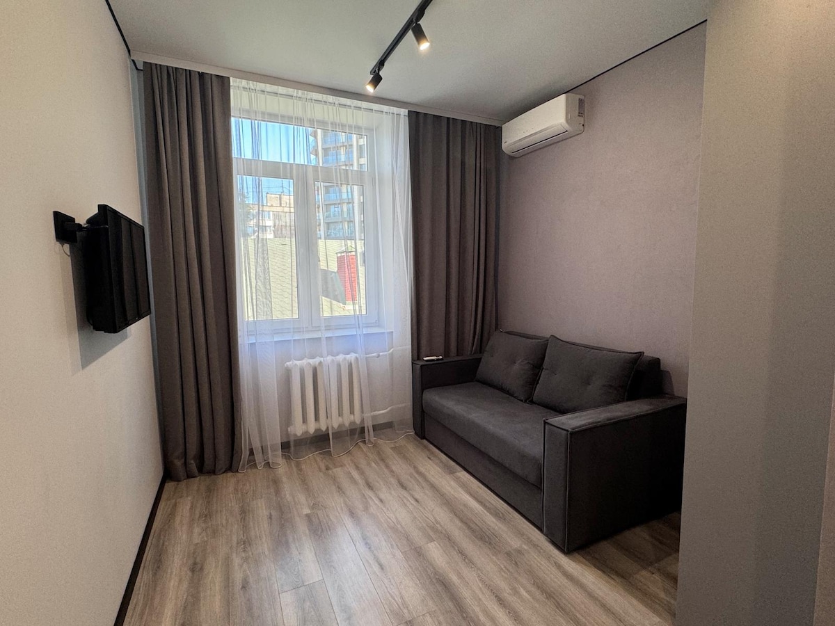 Studio in the center of Chisinau, entrance from pedestrian street Eugeniu Doga with many cafes and restaurants. Close to Metropolitan Cathedral Park, Arc de Triomphe! 50 meters to shopping mall Sun City, Gemini, market no. 1, restaurant Creme de la Creme, Bonjour Cafe, Cafe Foișor and other famous places of Chișinău.