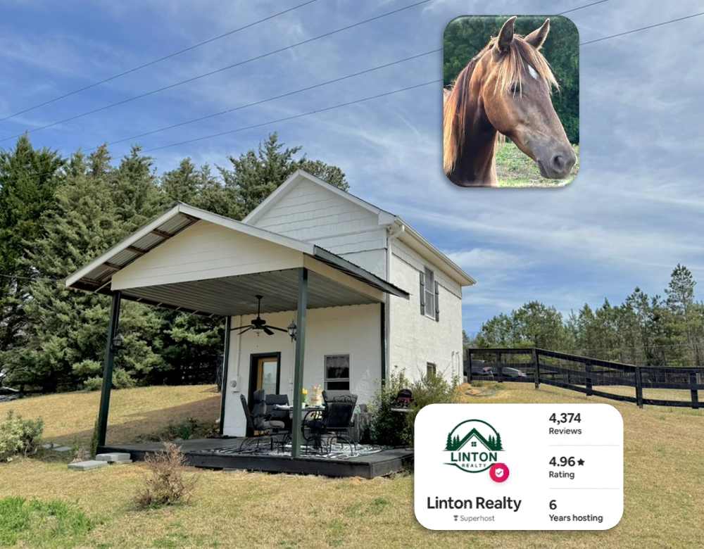 Pet-friendly guesthouse with a view. Located in Northeast GA, 1.5 hours north of Atlanta, 45 minutes from Helen, Clemson and 2 minutes from beautiful Toccoa Falls and historic downtown. Our guest house has 2 beds, one couch, a full kitchen, two baths, two porches and is handicap accessible upon request. The guest house can be used for small parties and get-togethers, for an additional fee beyond the nightly/daily guest fee. Guest often see deer, fox, wild birds and beautiful sunrise/sunsets.