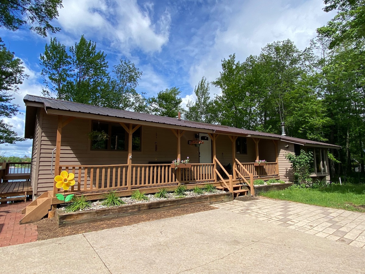 Scenically situated overlooking the water, our peaceful 2 bedroom cabin is located directly on the waters of the Johnson Falls Flowage. Perfect for nature lovers who love the quiet calm of the north woods. Kayak, fish or sit by the water right from the cabin shores. We are close to numerous State & County Parks, Boat launches, ATV/Snowmobile trails & more! The fire pit provides endless entertainment. Nature abounds with deer, turkeys, eagles, bears and much more!