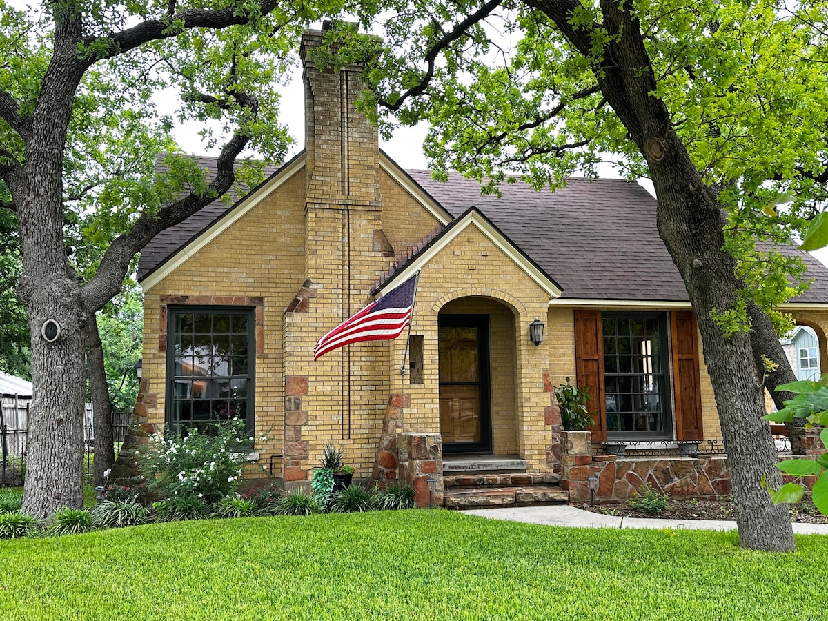 *Super clean *Short walk from downtown and TSU *Flexible check in/out *Flexible cancellations *Relaxed and quiet neighborhood The Owl’s Nest is a charming, newly remodeled craftsman bungalow that has retained its old charm, with original hardwood floors, and wood embellishments. Whether you are visiting Stephenville, or just enjoying a night out, this house has everything you need including a fully stocked kitchen, washer and dryer, Wifi, and outdoor grilling space with seating and fire pit.