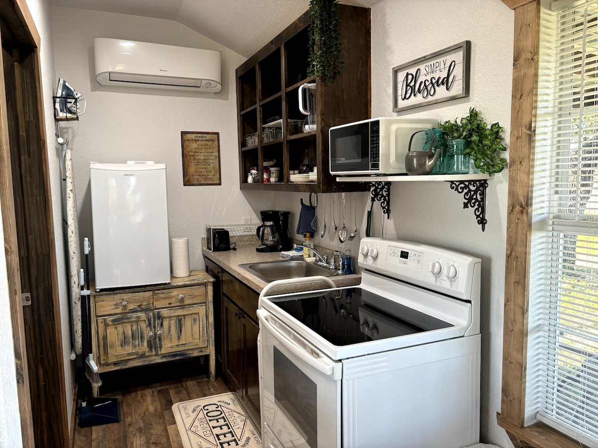 A unique experience in a beautiful farmhouse themed Tiny Home located on a working ranch in Bluff Dale, TX. Escape the hustle & bustle of the city to the peace & quiet of the country. This farmhouse themed Tiny Home, named The Homestead, is located inside the Tiny Home Retreat at Waumpii Creek Ranch. Please be sure to invite your friends or family to come along on your visit and stay in one of our other unique units in the Tiny Home Retreat.