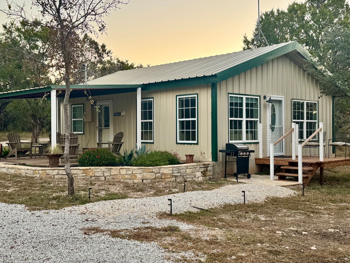 Take it easy at this unique and tranquil Cabin in the Woods. Welcome to Blackbird Cabin — your escape in the heart of the Glen Rose. Tucked beneath a canopy of Cedar and Oak trees, Blackbird Cabin invites you to slow down, breathe deep, and reconnect with yourself or someone special. This brand-new modern cabin features soaring windows, a cozy open floor plan, and the perfect blend of nature and comfort. Wake up to the sound of birdsong, and sip coffee on the private patio.