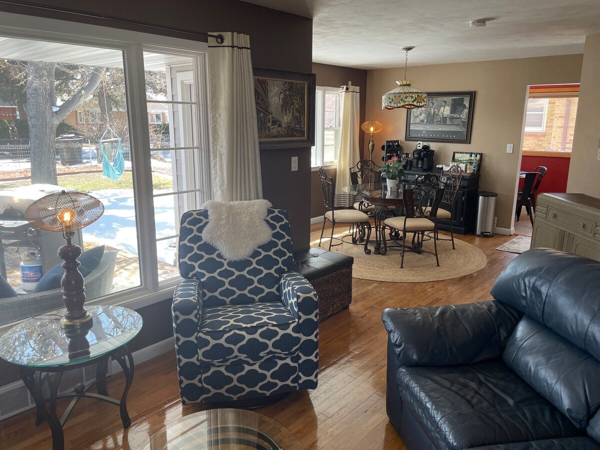 Experience comfort & convenience at this charming, centrally-located home in the heart of Sterling. Perfect for hosting families & friends! Our home features a spacious fenced backyard ideal for grilling, enclosed front porch perfect for sipping your morning coffee & enjoying an evening glass of wine. Take a 10-minute stroll to downtown dining, movies, or Columbine Park. Amenities include game room with air hockey table & vintage arcade games, washer & dryer.