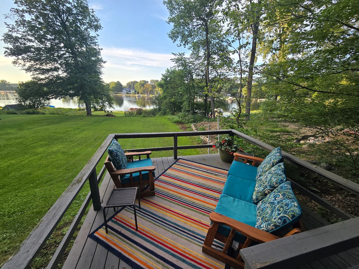 Welcome to The Wake House all-season waterfront retreat at 4 Corners! Relax on the patio, launch the kayaks, tie up to your private dock for cruising and year 'round lake sports, enjoy crisp fall hikes and wintry rides on the famous Pokagon State Park Toboggan Run, or cheer on the Trine University Thunder 3 bedrooms & roomy living areas with game room Full kitchen, BBQ grill, washer/dryer, fast Wi-Fi & desk Steps to restaurants and Lake James nightlife Book now to make lake memories!