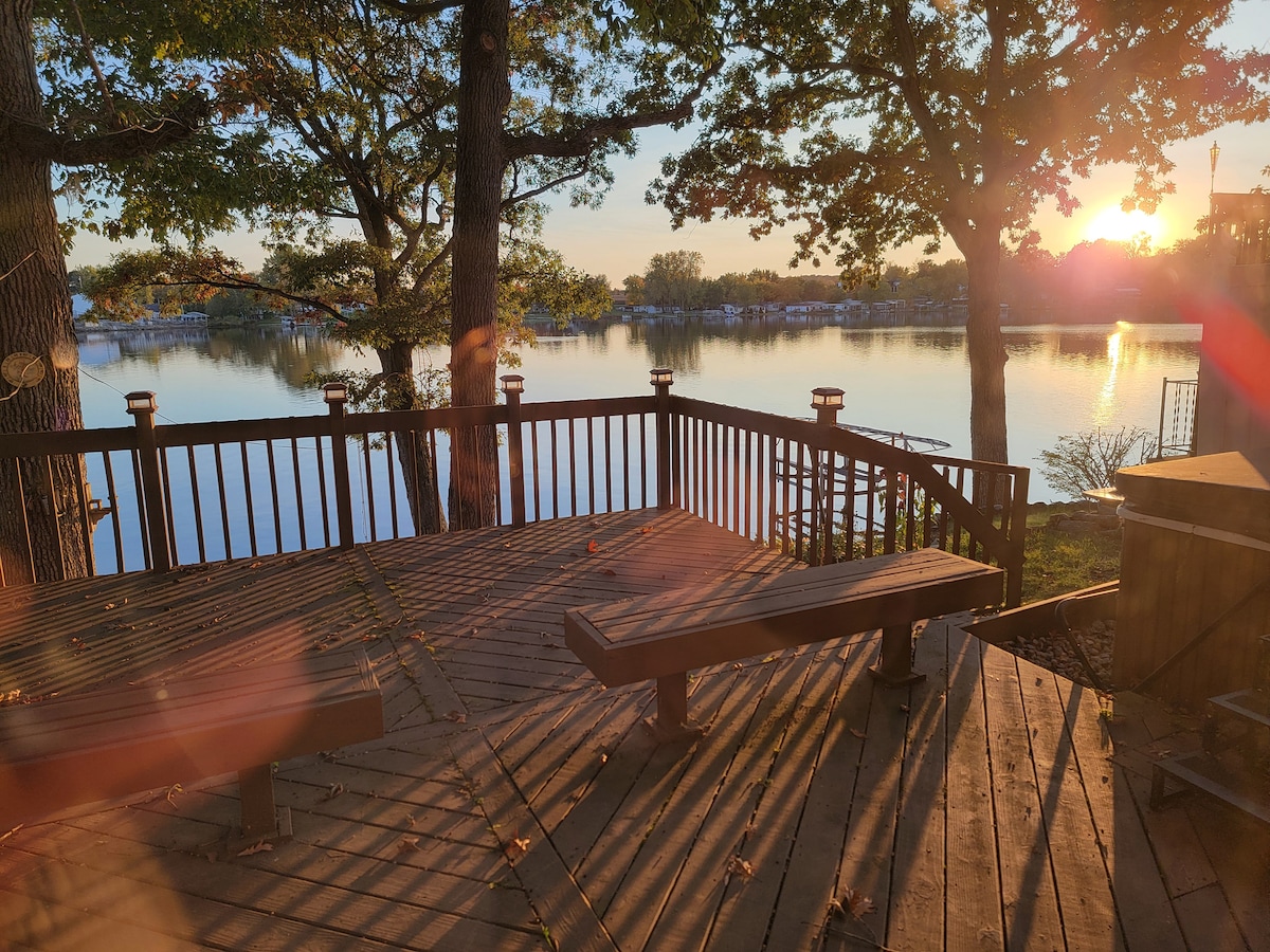Welcome to The Wake House all-season waterfront retreat at 4 Corners! Relax on the patio, launch the kayaks, tie up to your private dock for cruising and year 'round lake sports, enjoy crisp fall hikes and wintry rides on the famous Pokagon State Park Toboggan Run, or cheer on the Trine University Thunder 3 bedrooms & roomy living areas with game room Full kitchen, BBQ grill, washer/dryer, fast Wi-Fi & desk Steps to restaurants and Lake James nightlife Book now to make lake memories!