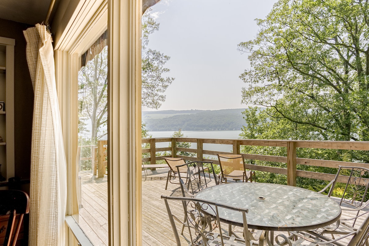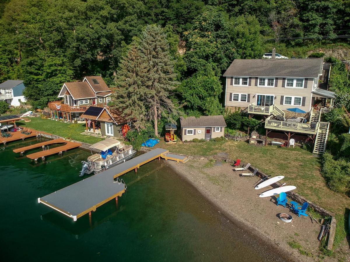 VISIONS ON KEUKA -NEW DOCK, Outdoor shower -Waterfront cottage -1/2 mile from Downtown Hammondsport -3 bed/2 bath (Sleeps 8 W/ 1 King, 1 Queen, Twin Bunks & Loft with Twin/Full) -12 wineries/breweries in 10 mile radius & great restaurants! -40+ stairs from the road to the house. -Parking is limited. -There is a $325 cleaning/septic fee. If you have more then 6 people and pets you must contact host first b/c there are additional fees ($50/person per day & $50 dog/per-day)