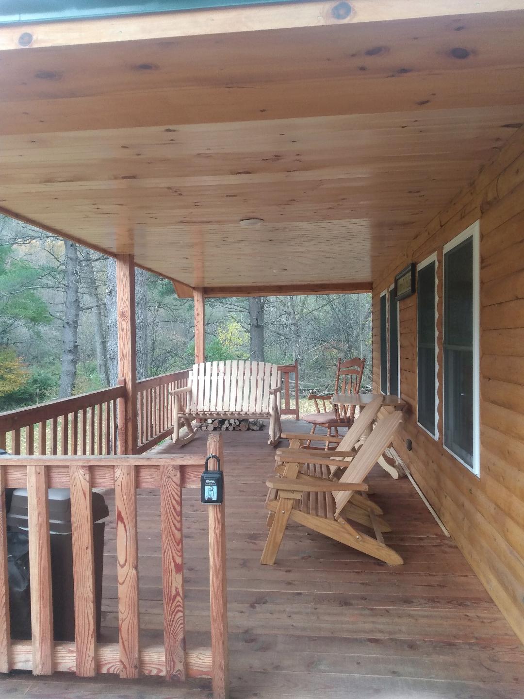 For your next getaway consider our Glenwood Cabin situated far enough from the road to offer you a retreat from everyday life. This cabin has 2 bedrooms, a full kitchen, a full bath with washer and dryer, and your choice of three porches to sit and enjoy the great outdoors. It is nestled into the edge of our woods on a 186 acre farm in beautiful amish country. There are trails in the woods for you to meander. We also are adding a nice playset for your children to play.