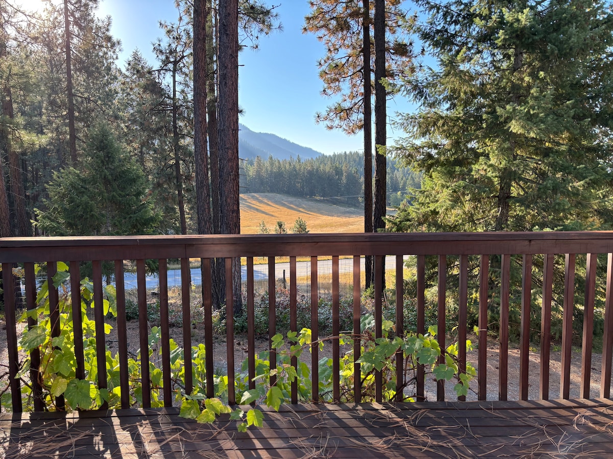 Cozy Clifftop View offers relaxation & adventure close to town. Unwind in this cozy hideaway overlooking the rolling hills & valleys just south of Chewelah. Enjoy a steaming cup of coffee or an evening glass of wine while mother nature paints the sky and various wildlife roam. Although shops & restaurants are only a short drive away, the area offers peace and tranquility.