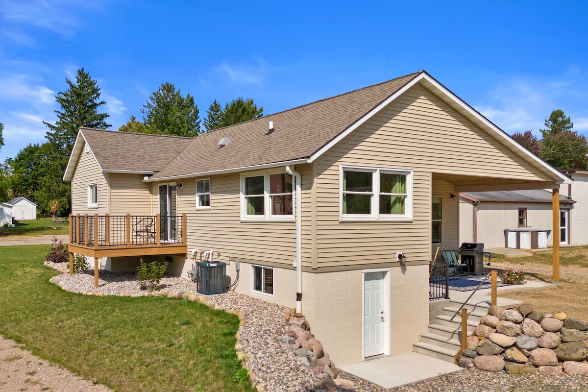 We’re located just outside of town with easy access to all that the beautiful Waupaca area has to offer. Only 10 minutes from the Chain! The property is surrounded by Maple and Oak mature forest yet has an open meadow perfect for picnics and star gazing. It is beautiful here; you can rest and recharge close to nature. Adventure Outpost is totally updated and designed for your comfort and convenience. The space is cozy, light and refreshing and big enough for the whole family!