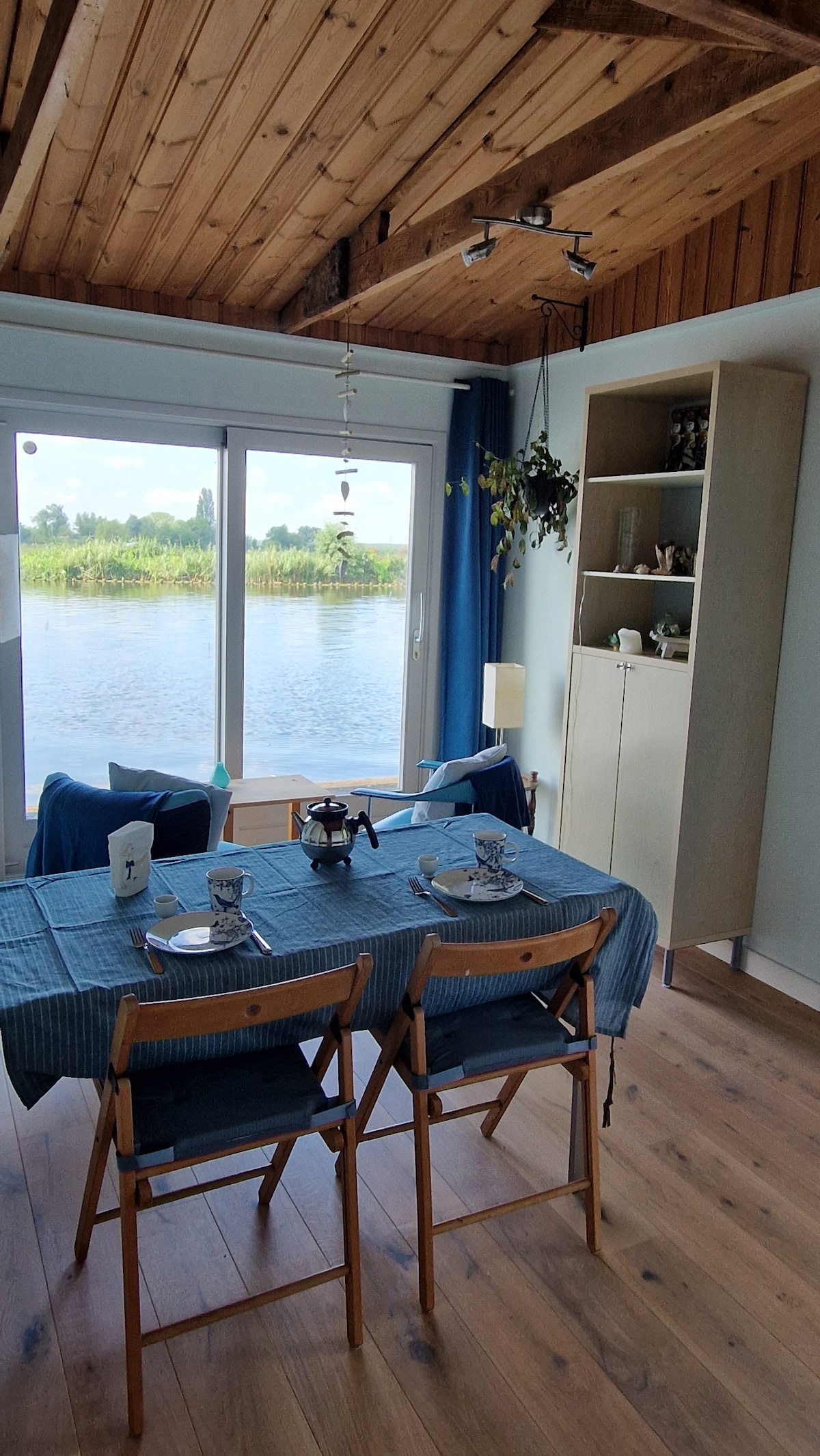 Romantische, zelfstandige studio met prachtig uitzicht op de rivier en gelegen in de landelijke buitengebieden van Amsterdam. Zodra je de studio betreedt, stap je in het rustige ritme van het rivierleven met zwanen, ganzen, waterhoentjes en eenden als je nieuwe buren. De woonark is gelegen aan een brede rivierbocht tussen het pittoreske dorpje Vreeland en het langgerekte Nederhorst den Berg. Een oase van rust en een inspiratiebron voor relaxte bezinning! Ieder seizoen heeft hier zijn charme.