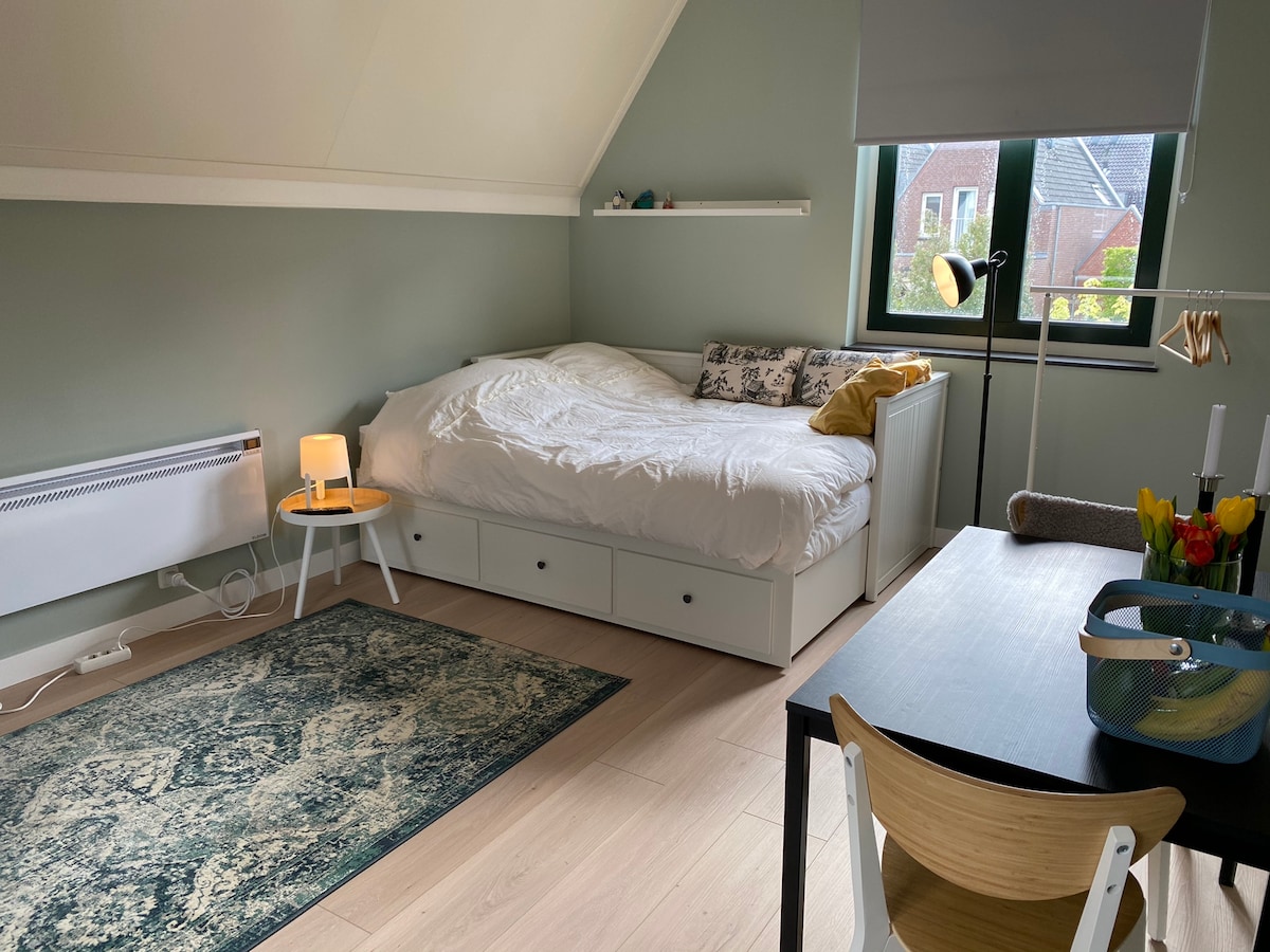 In our garden, above our garage we have a spacious and light studio, which has been totally renovated in 2020. You enter the studio through a private entrance in our garden. The studio is isolated and has an electric heating system. The studio is a perfect hide away for a (long) weekend or holiday, near the waters of Loosdrecht, which are perfect for a boat trip. Amsterdam (20 min. by car) and Utrecht (35 min. by car) are close by.