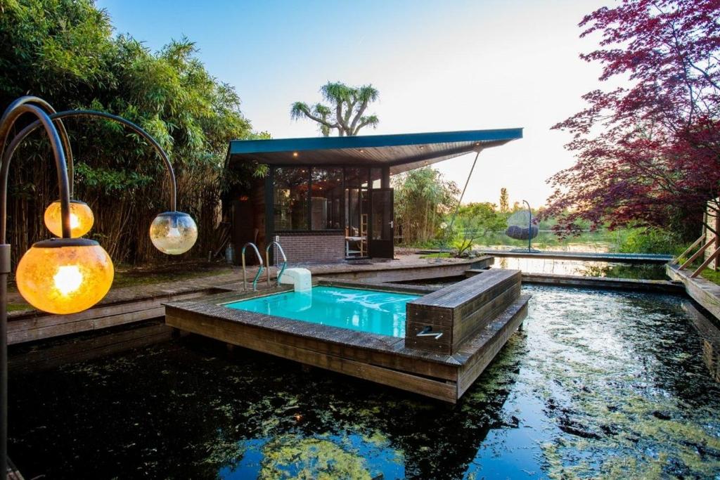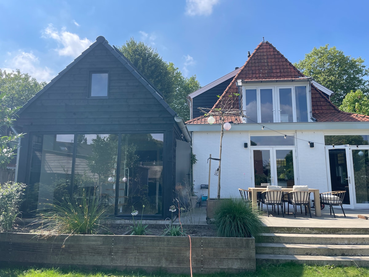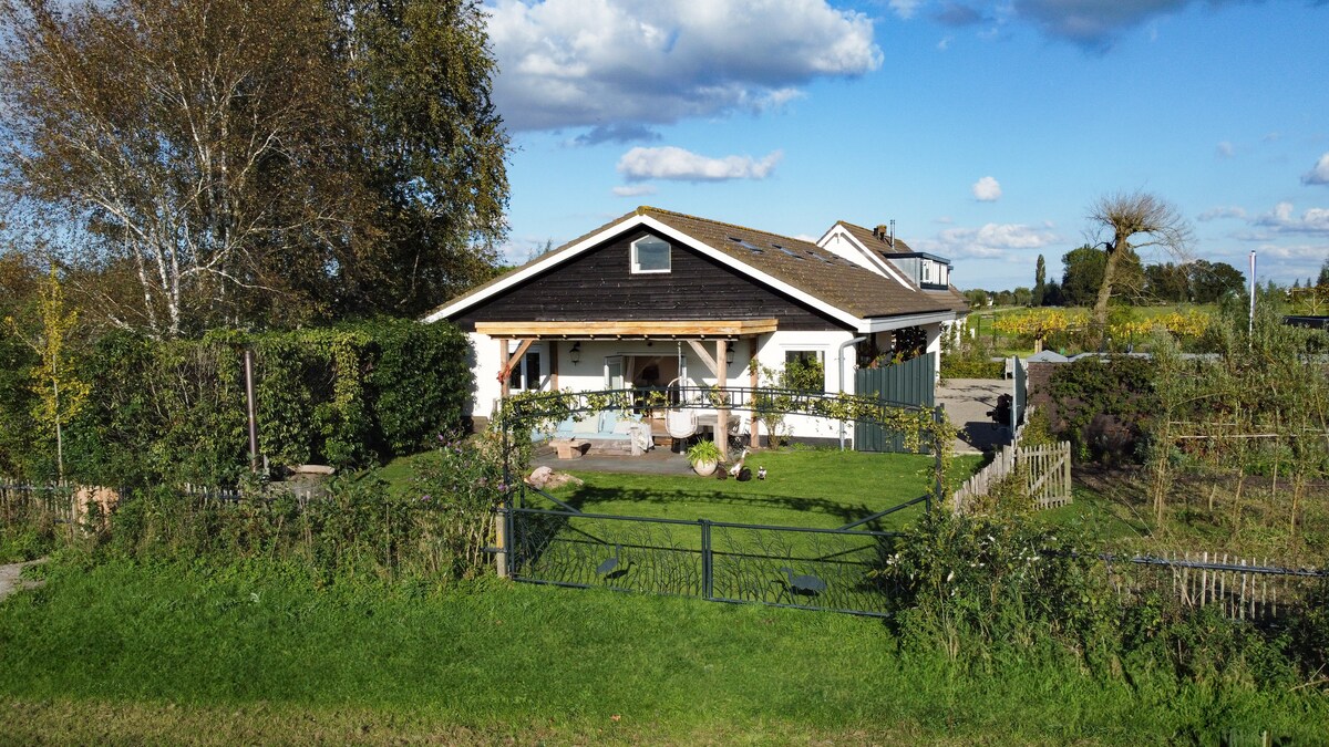 🌟Charming guesthouse near Vinkeveense Plassen! Nestled in tranquility just beyond the village, this cozy retreat awaits you. Explore the nearby shops, marinas, and bike rentals, all within a leisurely 10-minute stroll. 🏡 The detached guesthouse, along with the main residence, resides on a private island accessed by a charming bridge. Enjoy the serenity of the lush garden, grassy lawn, and private dock. Conveniently park on our private grounds, ensuring a stress-free stay.