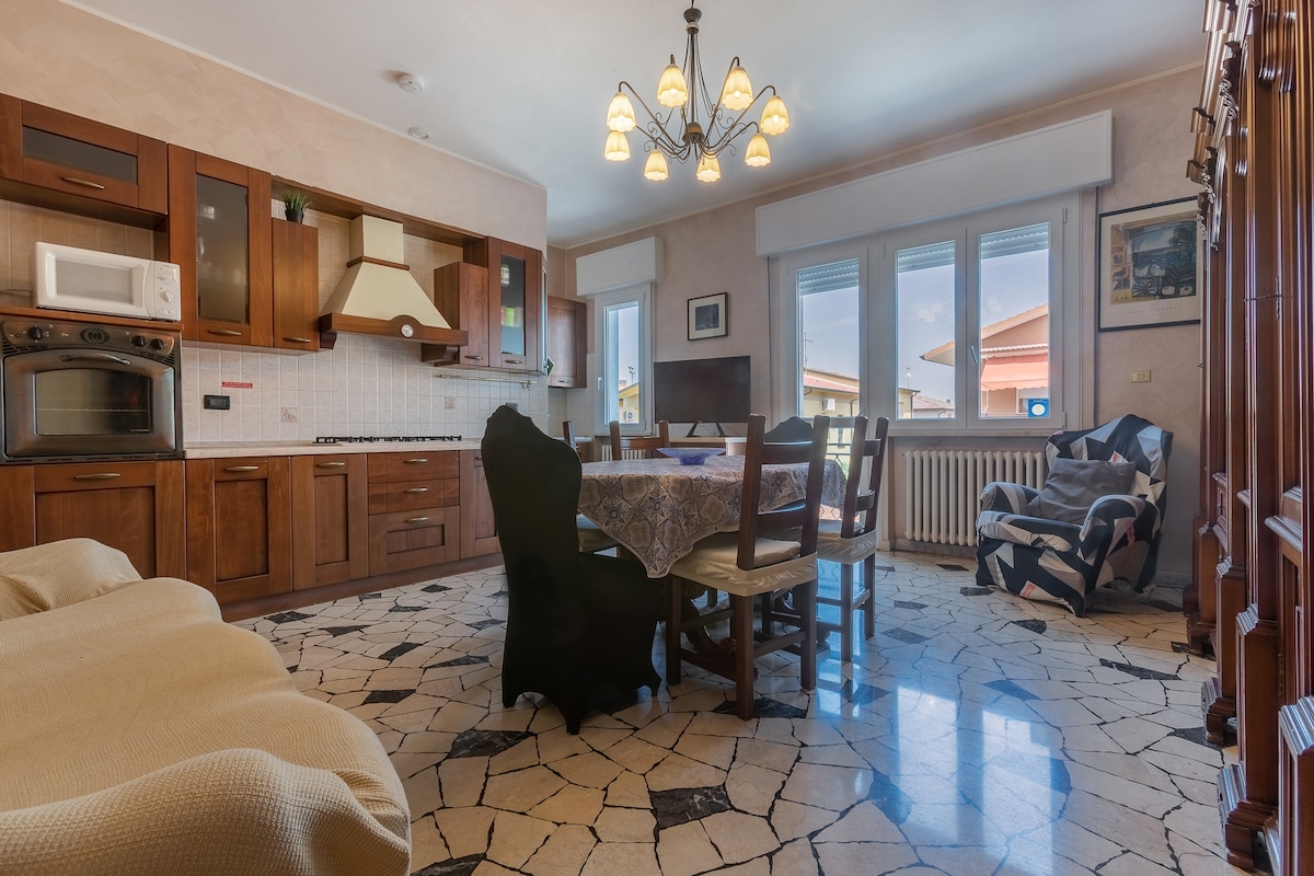 L'appartamento recentemente ristrutturato è al p.terra di un immobile di 3 unità, abitato dai proprietari e dagli ospiti. E' dotato di tutti i confort e dal soggiorno si accede direttamente ad un portichetto arredato e giardino ad uso esclusivo. Zona molto tranquilla, DENTRO LE MURA, a due passi dal Polo Chimico Biomedico Mammuth (Università) con parcheggio libero nella via e vie limitrofe.