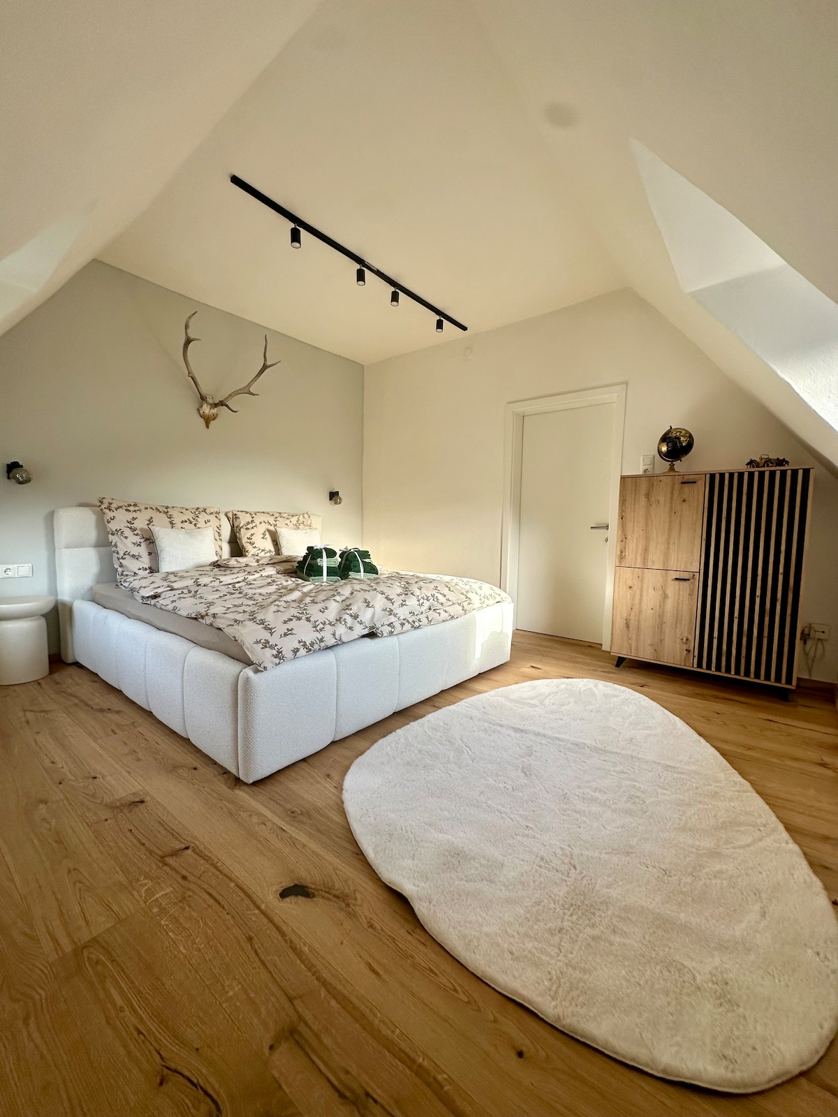 Meine Großeltern haben dieses Haus als kleine Pension gebaut und betrieben. Dort, wo damals separate Gästezimmer waren, befindet sich heute eine neu renovierte lichtdurchflutete 100qm 3-Zimmer-Dachgeschosswohnung mit Bergblick, in der ich jetzt lebe. Da ich jedoch selbst viel unterwegs bin, habe ich beschlossen die Tradition des Hauses fortzusetzen und gelegentlich Gäste zu empfangen. Vielleicht schon bald dich?