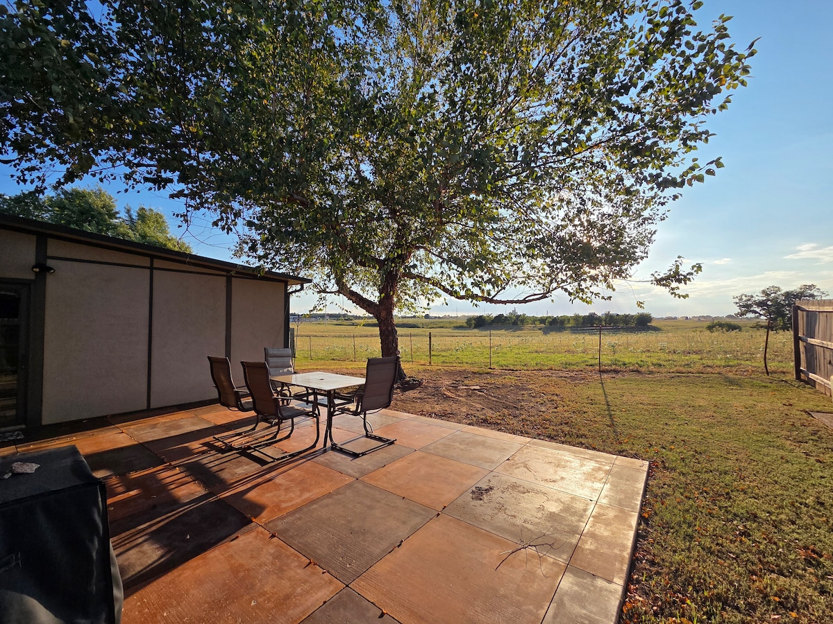 Our place is 15 minutes from Oklahoma State University, Lake McMurtry East is 3.5 miles away. You’ll love our place because of the outdoors space, tranquility and the wildlife. Our place is good for couples, solo adventurers, and business travelers. Enjoy the stars and nights around the fire pit. Taxes are less out here too - you don't have to pay the 4% city or 7% accommodation taxes when you book with us since we're outside city limits.