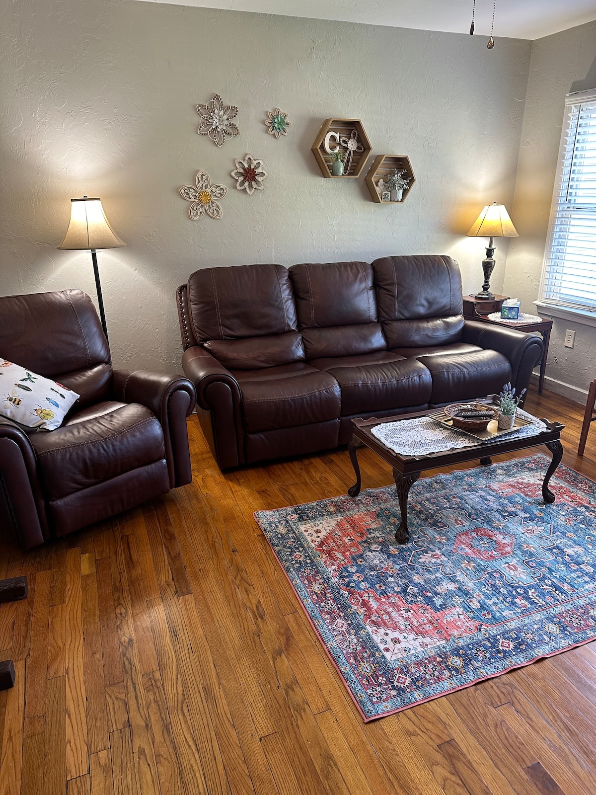 We have a very cozy farmhouse style cottage. Has a large covered back porch for relaxing in the evenings. We are confident that you will feel right at home. We have a full access kitchen for cooking all your own delicious meals. Washer and dryer accessible to guests. Also featuring your very own coffee bar!!! We do allow pets we just ask that they be crated when indoors.