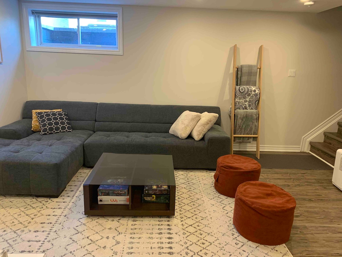 New basement suite with a full kitchen and a spacious living room. Large windows for lots of natural light. Foosball table and board games available! Located in a family friendly neighbourhood in Kanata South/Stittsville near Canadian Tire Centre and Kanata Tech Park. And steps aways from the Trans Canada Trail. Young family (with loud twin toddlers) lives upstairs and happy to answer your questions and provide local recommendations!