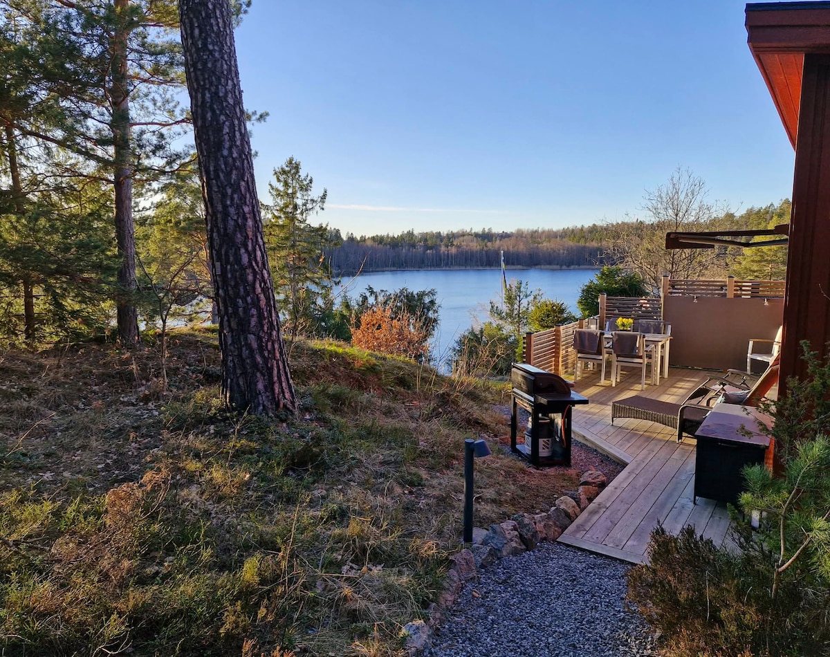 Du/ni kommer att älska mitt ställe pga av naturen, solen från morgon till kväll, lugnet, havet, de gigantiska fönsterna. Njut av lugnet, djurlivet. Huset är byggt för att få er att känna att ni är mitt i naturen fast inomhus. Ta gärna skogsvandringar i närområdet. Till huset tar ni er med fördel med motorbåten med en 4 hp roddbåt, som ingår, då det är ca 500m skogspromenad genom skogen från parkeringen. På vintern går ni genom skogen om båten inte ligger i vattnet.