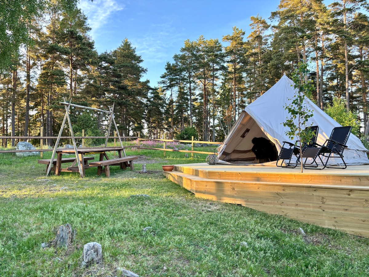 Welcome to our Galmping tent in a unik and calm surrending in Stjärnholm next to Oxelösund, just 1.5 hour from Stockholm. The Glamping tent lays just by the ocean below a hill and have a private gate with a small boat, two sups and barbecue area. In the shed next to the Glamping tent you get fresch water and near the tent you find a privy. You also have a outdoorshower with freshwater. The bed is 120 cm wide and is beddeb with satinsheets
