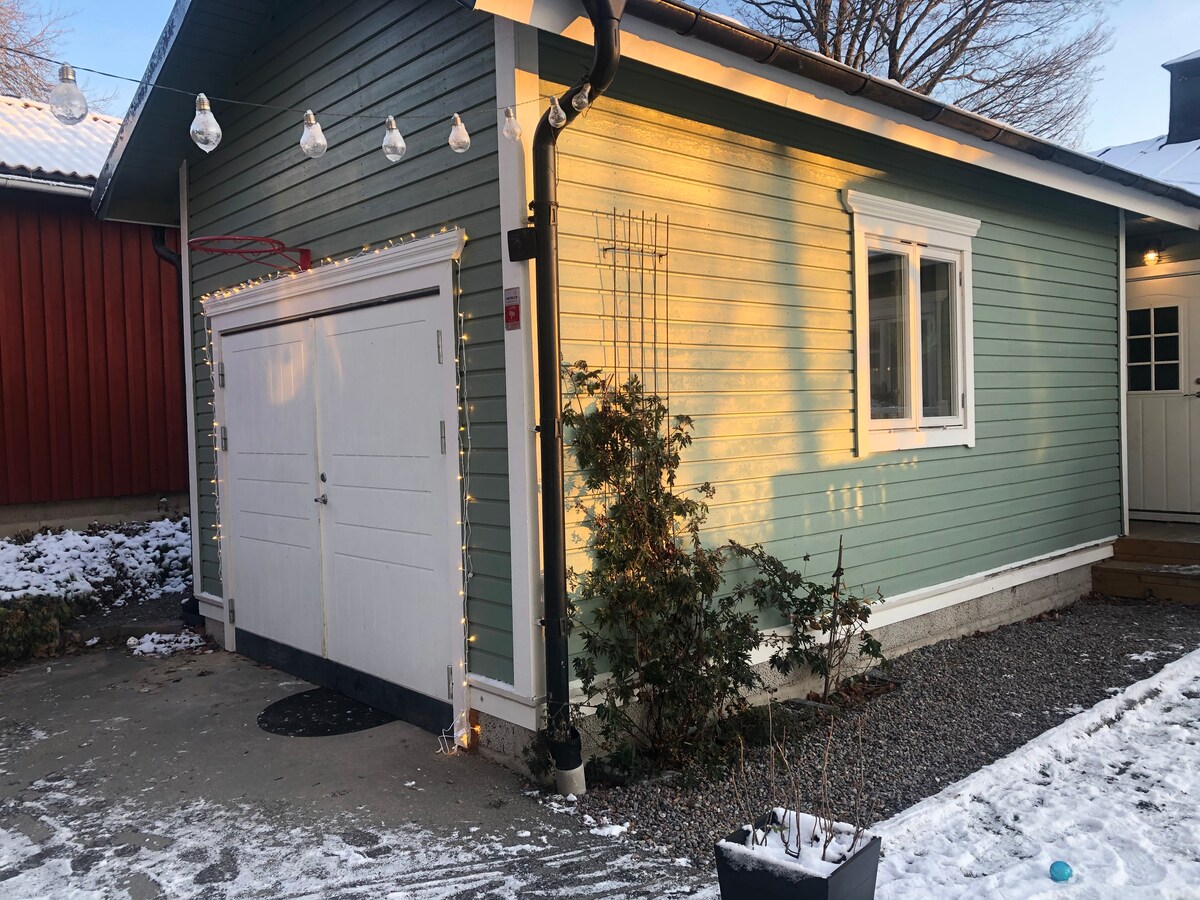 We have rebuilt our garage and think the apartment is pretty cool. A scandinavian touch with loft. @villarosenhill_airbnb +600 reviews ⭐️ Suitable for families friends or business trip. 2-4 people Loft bed 120 cm. 1-2 people. Bed sofa 120 cm. Barkarby is only 15 min with train to Sthlm center. Close to shopping & lots of restaurants. Big nice garden. Pool (jun-aug) 1h access . A Lovely greenhouse in the garden. Nice surroundings We have 2 guest houses on the property