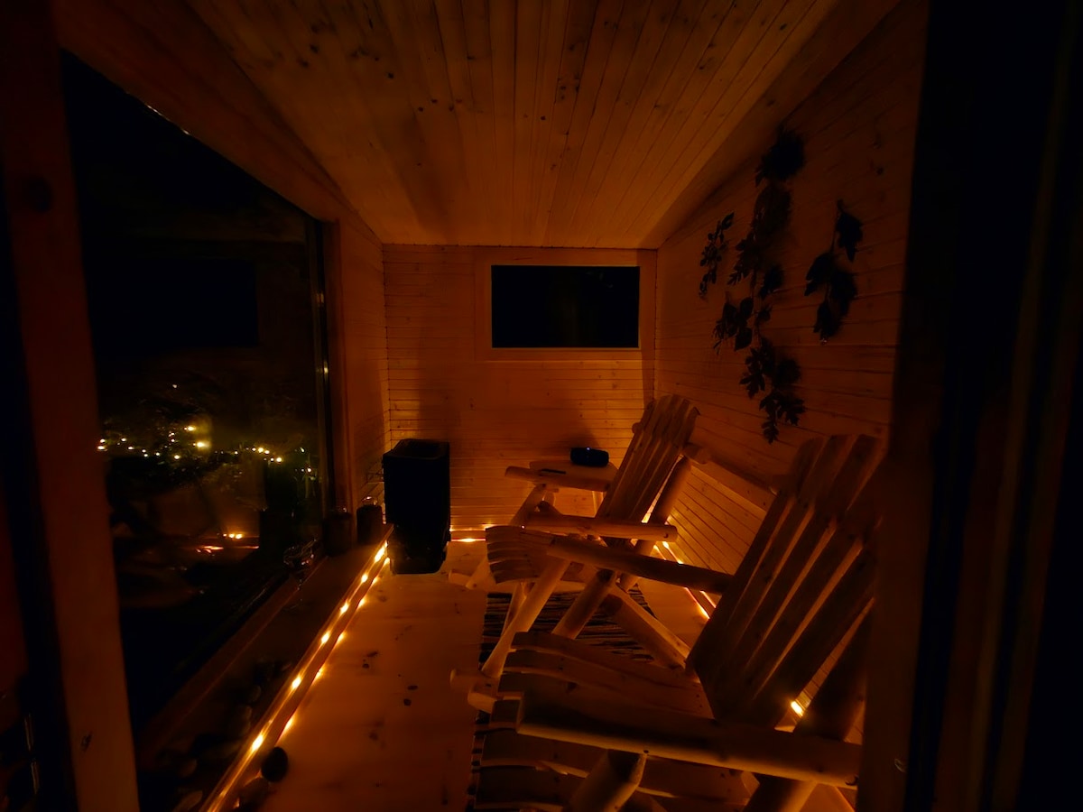 Welcome to our modern tiny cabin in Tungelsta – just 30 minutes from Stockholm. Here, you'll stay next to the forest, with easy access to the Sörmlandsleden trail and beautiful hiking paths. Enjoy a wood-fired sauna or a warm soak in the hot tub – both available all year round. During summer (May–Sept), you’ll also have access to a heated pool, kept at around 30°C. It is all private and not shared with others. A cozy holiday retreat for couples, small families or friends – in any season.