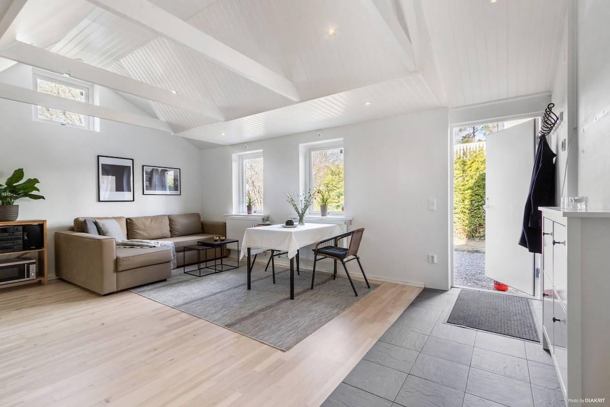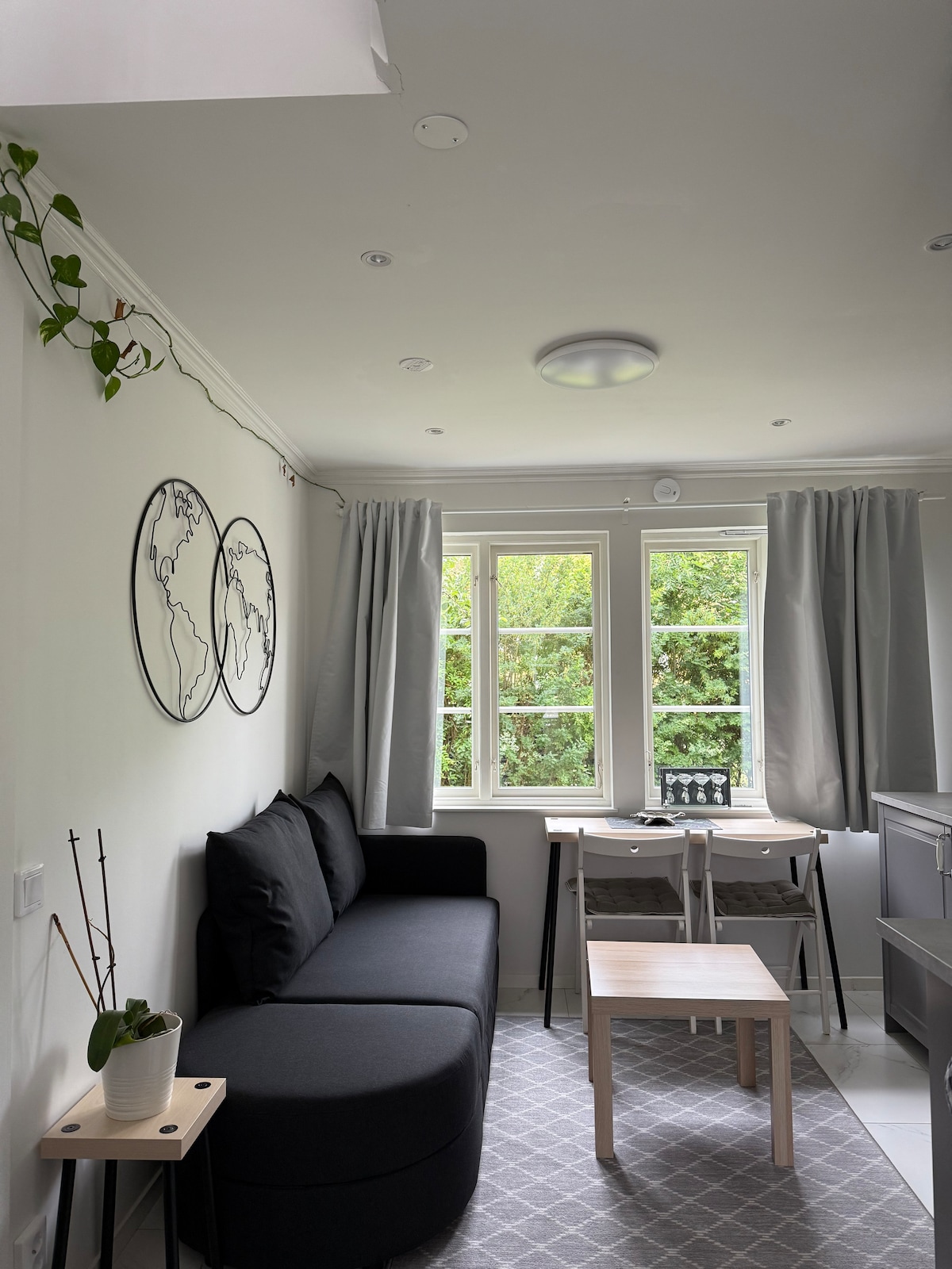 Imagine waking up refreshed in a comfortable bed in a charming apartment, with views of a lush garden. You start the day with a cup of coffee on your own patio and maybe a morning swim in Lake Norrviken, just a short walk away. Here you live close to nature yet within easy reach of Stockholm – perfect for both exploring the city and unwinding in peace and quiet.