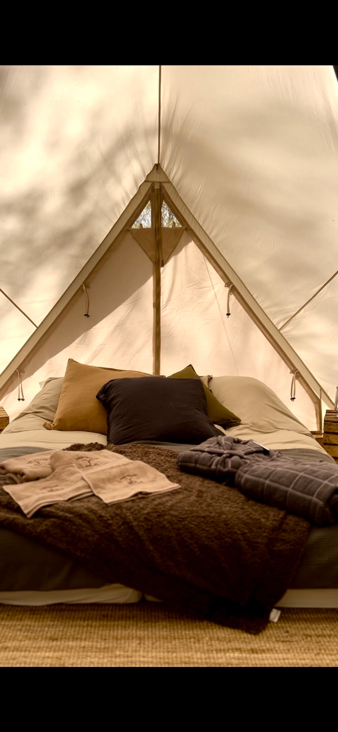 Välkommen till vårt härliga och populära Glampingtält! Här får du både den magiska naturupplevelsen av att bo i ett tält, samtidigt som du får generöst med utrymme, riktig mysfaktor och hög bekvämlighet. Hör du av dig i tid så finns det också möjlighet att lägga till badtunna, måltider eller tillgång till grillplats i paketet. Dass, dusch och kranar med vatten finns i anslutning. Inga rökare tack! Varmt välkommen till oss i naturen! 🌿