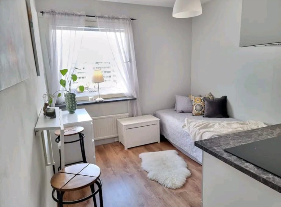 We have rebuilt our garage and think the apartment is pretty cool. A scandinavian touch with loft. @villarosenhill_airbnb +600 reviews ⭐️ Suitable for families friends or business trip. 2-4 people Loft bed 120 cm. 1-2 people. Bed sofa 120 cm. Barkarby is only 15 min with train to Sthlm center. Close to shopping & lots of restaurants. Big nice garden. Pool (jun-aug) 1h access . A Lovely greenhouse in the garden. Nice surroundings We have 2 guest houses on the property