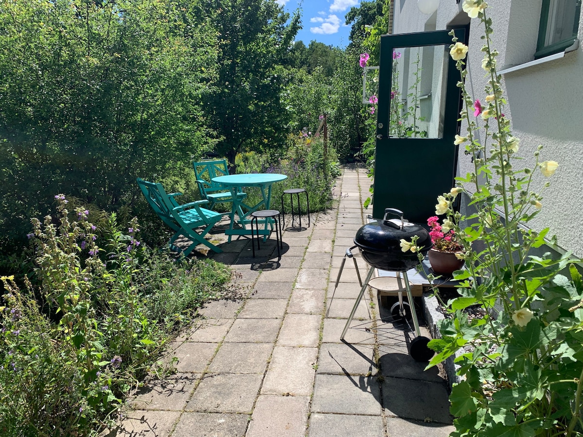 Villalägenhet 47 kvm i vacker trädgårdsmiljö. Egen ingång till ett stort vardagsrum med soffa, stor TV och skön dubbelsäng/bäddsoffa. I köket finns det plats för 4 pers, kyl/frys, induktionshäll, ugn/micro. Lägenheten har ett lyxigt badrum med dusch. I omgivningarna finns möjligheter till härliga promenader längs Mälaren. I den soliga trädgården kan man äta frukost och på hösten plocka äpplen. Till Stockholm City - Bil: 8 min, Tåg: 19 min, Cykel: 30 min.