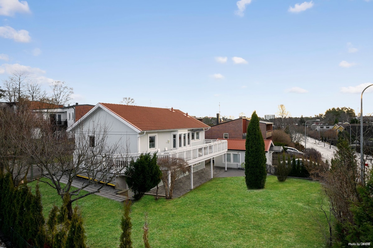 Welcome to our charming guesthouse, a stylish and cozy retreat surrounded by a spacious, blooming garden. Just a half-minute walk from the train station and a 20-minute journey to the old town, our newly renovated space offers the perfect blend of tranquility and convenience. Enjoy modern amenities including a fully equipped kitchen, a comfortable bath, and a delightful barbecue area. Plus, we're only a 5-minute walk from the beautiful Millesgården.
