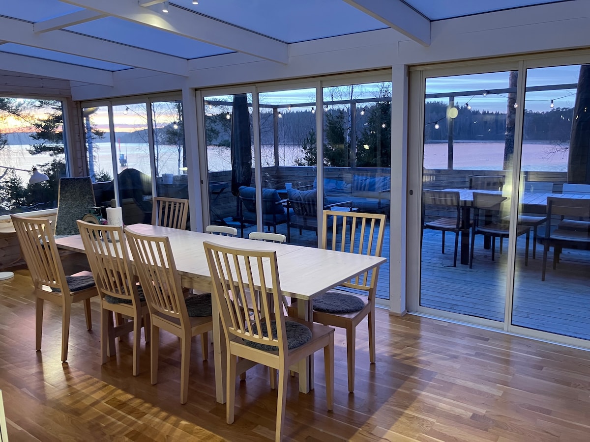 Next to the sea, there is a newly built charming house designed by an architect, with own access to a new sauna house! The house is located on Smådalarö in the Stockholm archipelago! The house has a southwest location. This means that you will have direct sunlight for most of the day and evening in the summer. Enjoy the sea view while you eat breakfast, lunch or dinner. Just a few steps away from taking a dip in the sea! The house also has a fireplace with large windows facing the water!