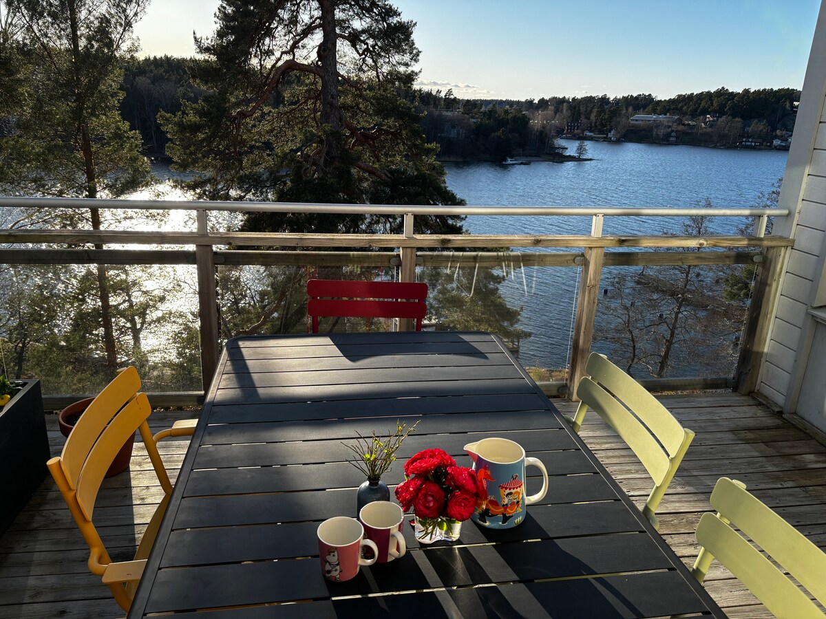 Välkommen till ett familjevänligt och rymligt hus med en magnifik utsikt över havet. Här dricker du frukostkaffet på uteplatsen i östläge och äter middag på altanen i kvällssol. Huset ligger precis invid havet med fina promenadstigar och flera stränder i närheten. I hyran ingår tillgång till S.U.P. Boendet kombinerar närheten till skärgården och lugnet med snabba färdvägar till Stockholm city (endast 25 min med buss till Slussen). Skärgårdsbåten till city går en kort promenad från huset.