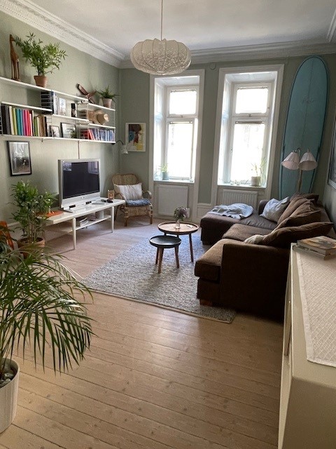 The apartment is on the 2nd floor in a beautiful building from 1880 situated in the heart of the trendy area called SoFo at Södermalm. It is a large, light, airy and very stylish 3 room apartment with all the rooms facing a wonderful park giving you a nice view to look at and great privacy. The apartment can easily and very comfortably host 4 guests. The area is one of the popular places in Stockholm with a great variaty of restaurants, bars, cafees and shops.