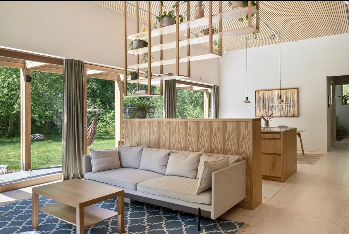 Welcome to our new (2023) ecological house with a calm and clean character with a ceiling height of 5 meters. The house is characterized by a space of air in combination with a large size photography collection on the walls. Dining area for the whole family on the wooden deck outside. Free parking with charger for 1 car. Quiet neighborhood about 5 km from Stockholm town, a 10 min walk to the subway station and 11 minutes ride to town. It is about 1 km to Lake Mälaren's natural areas and beaches