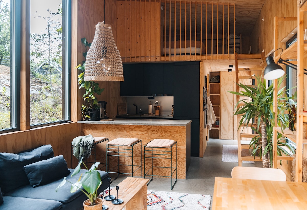 Insta--> #JohannesCabin Slappna av i detta unika och lugna boende. Känn dig som hemma fast bättre och härligare. Här sover ni i en dubbelsäng (160cm bred) uppe på ett sovloft. Rymlig nedervåning med vardagsrum och kök i ett (sovmöjlighet i 180cm lång soffa). Badrum med dusch och kombinerad tvättmaskin&torktumlare. Underbar uteplats med grönska. Perfekt för att laga middag inomhus eller utomhus på grillen. For more info follow us on Insta--> #JohannesCabin.