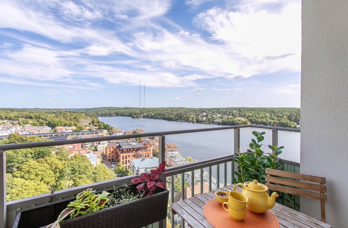 A luxurious brand new nordic design apartment with fantastic views of Stockholm, right by the water, just a 10-minute walk to Liljeholmen's metro station, and close to trendy Södermalm. Wake up and enjoy a cup of coffee in your spacious glass-enclosed balcony with breathtaking views of the city. Later at night, enjoy a glass of wine while the city lights shine bright in the horizon as seen from the fourteenth floor of this wonderful newly constructed building.