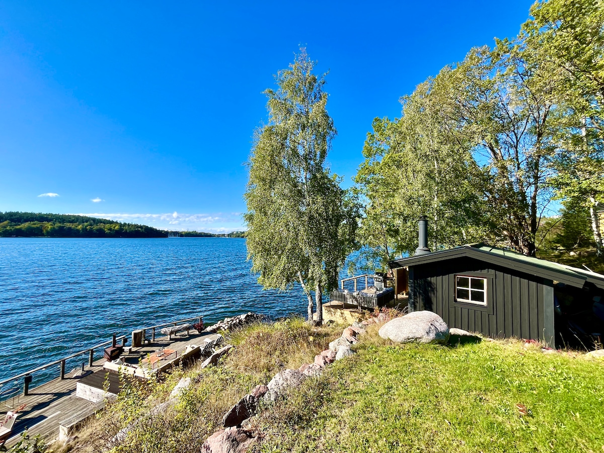 Här kan du bo i ett hus direkt vid havskanten i Stockholms skärgård. Endast 30 minuter med bil från Stockholms innerstad. Huset består av ett sovrum med havsutsikt åt två håll, sov med fönstret öppet och hör vågorna. Sällskapsrum med fullt utrustat kök, soffa och fåtöljer. Uteplats åt två håll med både morgon och kvällssol. Det finns en liten stenstrand i direkt anslutning till huset, 20 meter från huset finns också en vedeldad bastu att låna. Badbrygga finns 100 meter från huset.