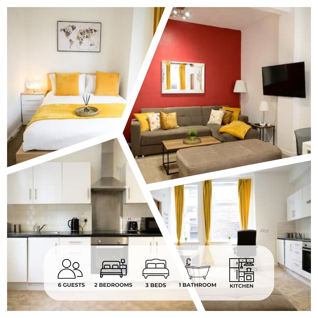 曼彻斯特附近的现代化两卧室公寓|可入住 6 人|免费停车