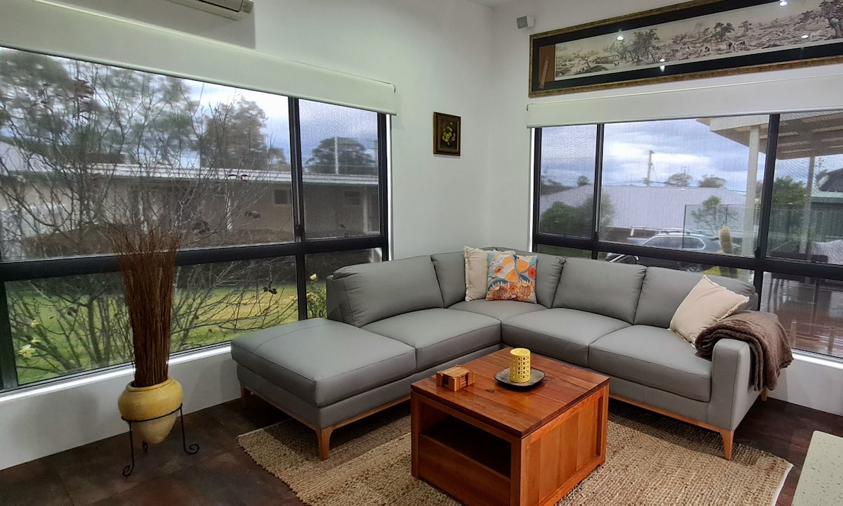 Relax with the family at this spacious, modern 2-bedroom retreat on a peaceful, tree-filled estate. Unwind in the light-filled living area or enjoy bird song from the pergola. Explore the beaches in Port Stephens or Newcastle, play a round of golf, or sample the Hunter Valley’s world-class wine and food less than an hour drive away. The home includes a full kitchen, laundry, Wi-Fi, and plenty of space to stretch out, perfect for families, couples, or friends wanting a relaxed escape.