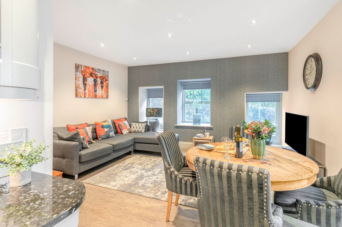 ‘The Knight’s Watch’ Apartment is an exclusive, central & comfortable base for exploring. Located in the heart of historic Richmond, this newly renovated apartment features large arched windows with stunning views of Richmond castle from both bedrooms & views of the beautiful town from the open plan living space. It’s a short stroll away from the River Swale & waterfalls, only a few feet from the castle & just yards from the cobbled market square where most of the cafes, bars & shops are found.