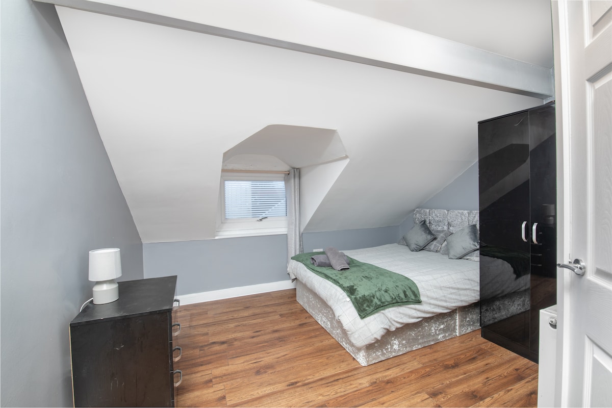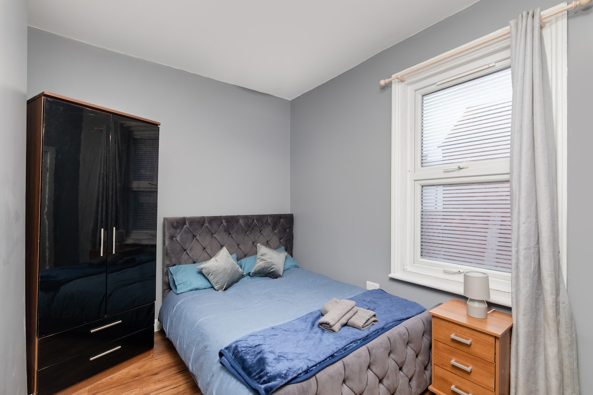 Modern quirky style decoration in this 3 bedroom house. ALSO offering *EV Charging. Perfect for families/groups. The master bedroom has a King size bed and office space offset. 2 x twin rooms giving flexibility. Bathroom with bath/shower. Extra toilet downstairs. Lounge/diner with comfortable 3 seater sofa and 3 chairs. Fully equipped kitchen with microwave, dishwasher, washing machine and essentials. Enclosed back garden with decking and pebbled area. Close to the station, town centre, theatre.
